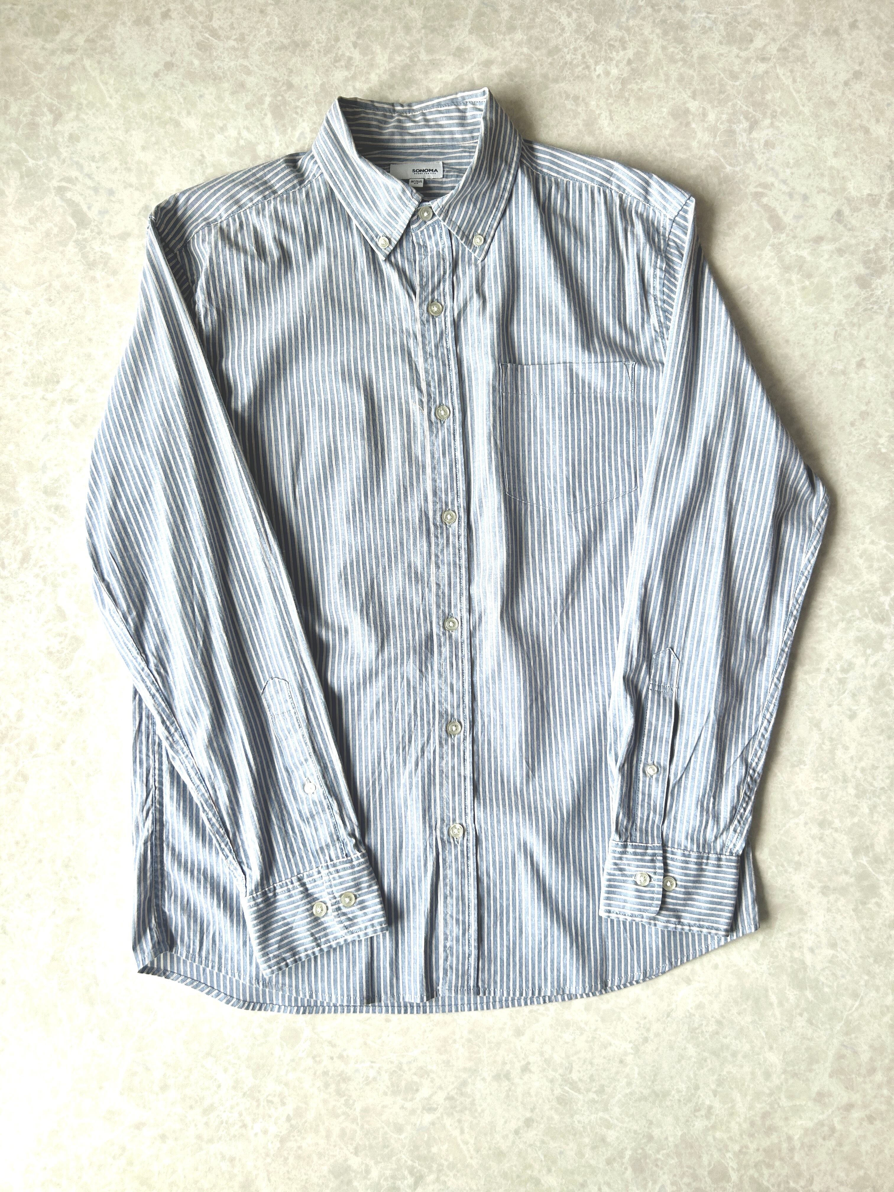 SONOMA Goods For Life ブルー×ホワイト ストライプ ボタンダウンシャツ